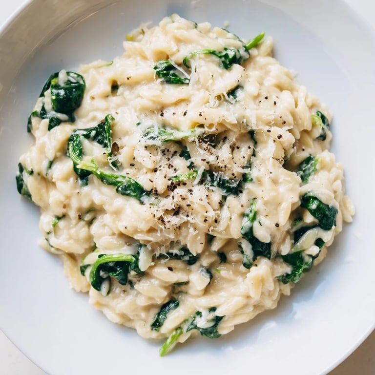 Merken An evening when I was tired from work and wanted something that felt like a warm hug on a plate, I threw together orzo, cream, and whatever greens I had on hand. The way the pasta absorbed the buttery sauce while the spinach wilted into silky ribbons made me realize comfort food doesn't require complicated techniques, just a single pan and about half an hour. Now it's the dish I reach for when I need something both nourishing and effortless.