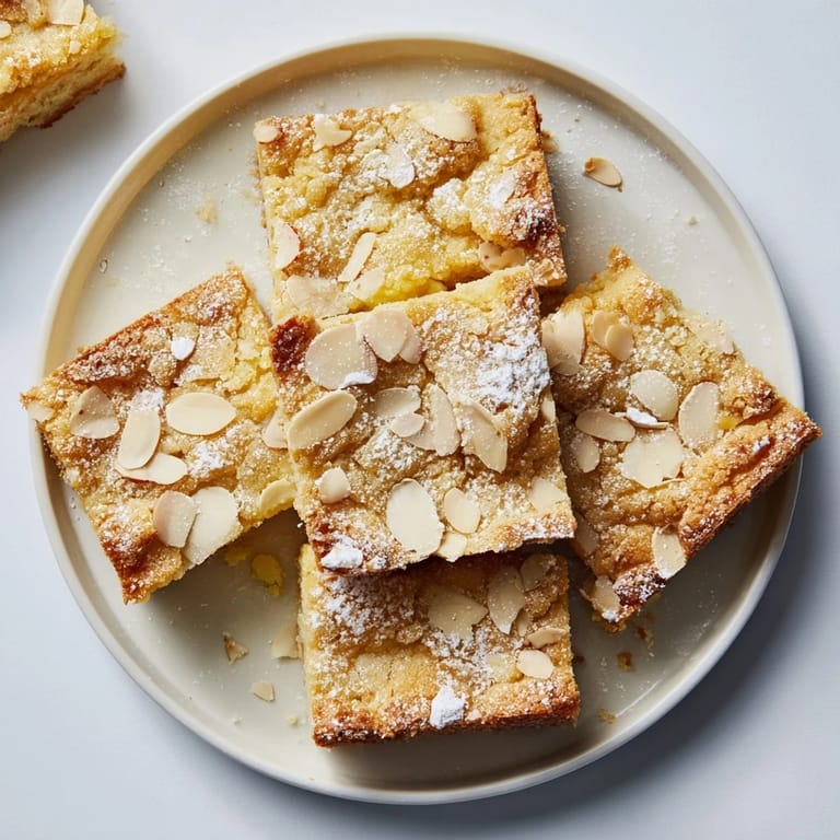 Merken Ein klassischer deutscher Blechkuchen mit weichem, hefebasiertem Teig, reichem Buttertopping und einem zarten Crunch durch Zucker und Mandeln. Perfekt zu Kaffee oder Tee.