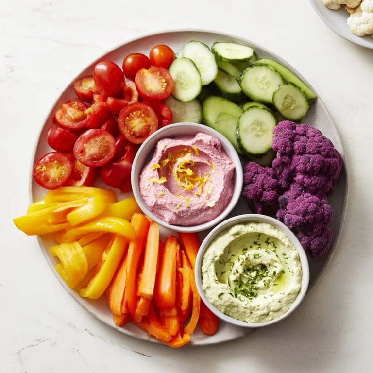 Ich serviere dieses farbenfrohe Gemüseplatte oft bei Treffen mit Freunden – es kommt immer gut an und sieht fantastisch aus.