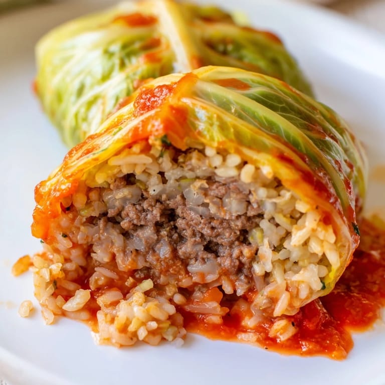 Merken Zarte Kohlblätter gefüllt mit einer herzhaften Mischung aus Hackfleisch und Reis, in einer aromatischen Tomatensoße geschmort – ein klassisches Komfortgericht, das einfach zuzubereiten ist.